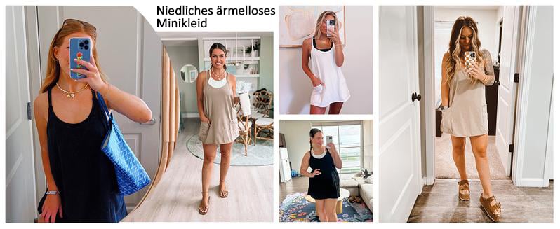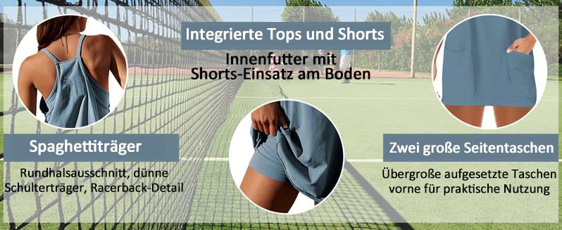Das lässige, ärmellose Sommerkleid für Damen hat zwei aufgesetzte Seitentaschen, einen Rundhalsausschnitt, ein Racerback-Design und Spaghettiträger. Die bequemen integrierten Shorts bestehen aus leichten Stoffen, sodass du nicht nur stilvoll und schön aussiehst, sondern dich auch an heißen Tagen angenehm kühl fühlst.
